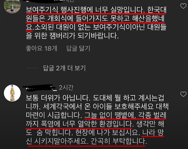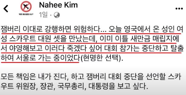 세계스카우트 연맹은 "한국에게 잼버리 대회를 예정보다 일찍 중단하고. 참가자들이 철수하는 것을 지원해 달라고 했으나 한국이 중단 없이 강행하겠다 답했다"라고 밝혔는데요. 세계적 망신이 따로 없습니다. 스카우트 연맹본부에서 잼버리 대회 중단 뜻을 내비친 만큼, 다른 국가들의 철수가 이어질 우려가 나오고 있습니다.