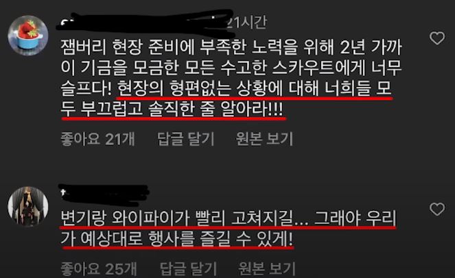 잼버리 참가비를 들으시면 놀라실 텐데요. 잼버리 기간 동안 총금액 1,020,000(약 900달러) 상당의 돈이 들어갑니다. 참가비만 백만 원에 육박하고, 비행기표 교통비까지 포함하면 500만 원 상당의 비용이 들어갑니다. 이렇게 많은 잼버리 참가비를 지불하고 학생들이 한국에 방문했는데요, 열악한 환경과 폭염으로 어려움을 겪는 전 세계 청소년들에 너무 미안할 따름입니다.