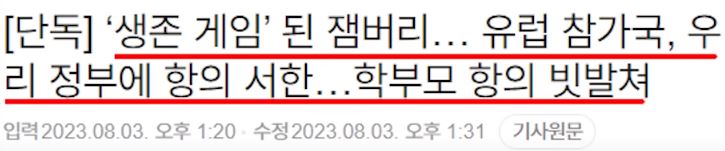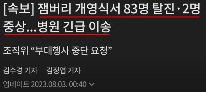 최대 인원이 참가한 영국의 잼버리 철수 결정으로 대회전부터 부실 우려고 제기되었던 잼버리 대회의 중단도 현실화되고 있습니다. 폭염으로 온열 질환자가 계속 나오고 더러운 화장실 그리고 저급한 식단 문제등이 알려지며 국제적 문제로 비화되고 있습니다.