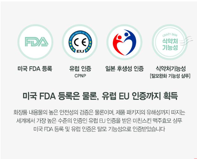 2. 유럽 EU인증, 미국 FDA등록, 일본 후생성 인증까지 받았으니 퀄리티와 안정성면에서 국내최고입니다.