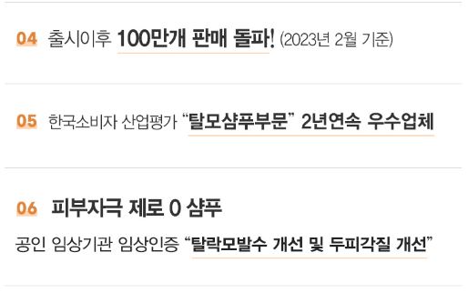 이렇게 대표적인 장점들을 살표 보았는데요, 탈모샴푸 판매 1위를 하지 않을 수 없는 탈모샴푸입니다. 저 같은 경우 머리숱이 없다 보니 모발을 단단하고 힘 있게 유지해 주는 상품이 좋은데 이 상품은 그런 부분에서 합격점일 주어도 무방하다고 생각합니다.