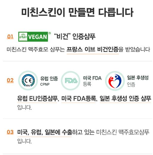 7. 프랑스 이브비건인증을 받은 샴푸로 동물성 원료와 유전자변형 원료가 사용되지 않았습니다.